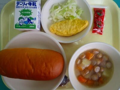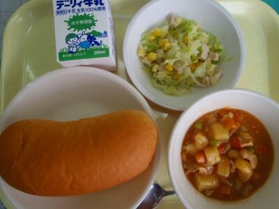 にんじんをすりおろしたものをシチューに入れたので、今日のシチューはオレンジ色でした。にんじんが苦手な児童も、にんじんの味をあまり感じなかったようです。今日も寒かったのですが、牛乳の残りもなく、すべて完食でした。すばらしい!!