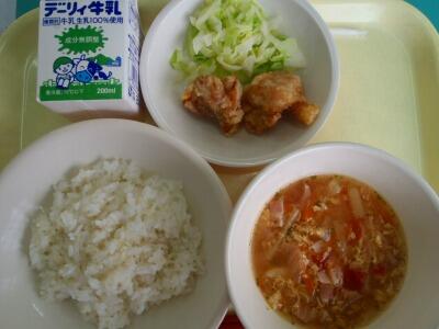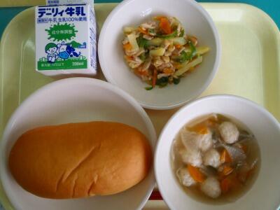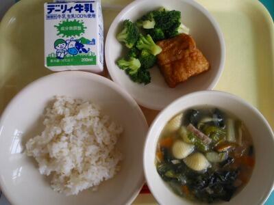 しいらの竜田揚げは味がしみていて、とてもおいしくいただきました。本校の給食のみそ汁は、あじ子でだしをとっていて、化学調味料は使用していません。今日もだしのきいたおいしいみそ汁でした。