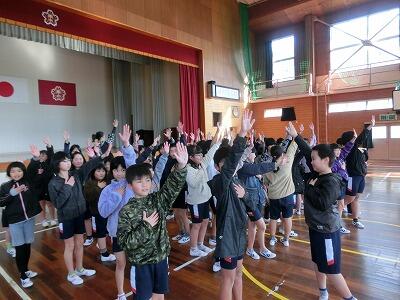 4年生全員で練習を行いました。6年生への感謝の気持ちをしっかりと伝えたいです。