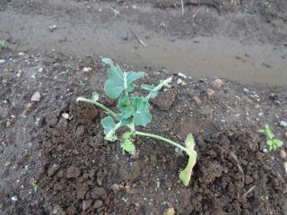でも、柔らかいブロッコリーの苗のおいしさを知っている鳥?か何かが、葉っぱを食べてしまっていました。これは危ないと台所の三角コーナーの網で保護をして、急場をしのいでいます。大きくなる前に、本格的に防鳥ネットのトンネルをしなければと思っています。