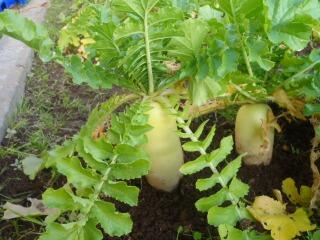 2学期に植えた大根がすくすく成長しました。1月末に収穫。