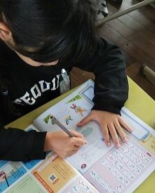 その後、ひらがな練習帳で書く練習をしました。今日は、いろいろな線をなぞって書く練習でした。楽しく学習をしていました。