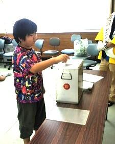 いろいろな税があることを勉強した後、仮想市長選として、2名の立候補者が公約とする税金の使い道を聞き、投票する、主権者教育のようなことも併せて学習しました。