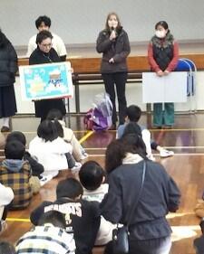 南郷駅東店の方も来られ、紹介がありました。子どもたちもいつもお世話になっている方で、学校の読み聞かせにも来てくださる方なので、子どもたちはよく知っているようでした。