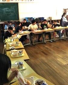 給食の時間は、留学生とAFSの方が、5・6年生の教室に入って、子どもたちと一緒に食べました。