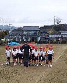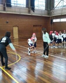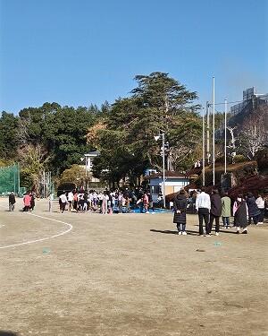 とても寒い日で、風もあったので余計に寒く感じました。今日は寒さ対策で、体育服の下にシャツやタイツ、体育服の上のジャンバー等もOKにしました。
