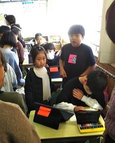 その後、「じゃんけん大会」をみんなでしました。それぞれの国のじゃんけんの仕方を聞いて、それに合わせてじゃんけんをしました。勝ったらシールがもらえるおまけ付きでした。みんな、大盛り上がりでした。