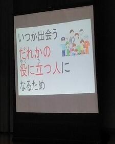 今日の朝の活動は、全校朝会でした。今回は、学習についての話を担当の先生がしました。「何のために勉強するのか」というテーマで、勉強する意味について全校児童に話をしました。動画やプレゼンを使って分かりやすく話をし、その先生は『いつか出会う誰かの役に立つ人になるため』と伝えました。