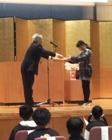 2月2日(金)に、ハートフルセンターで、感想文・感想画コンクールの表彰式がありました。本校から4名が表彰されました。たくさんの応募の中から、金・銀・銅賞に選ばれた児童生徒の表彰でした。教育長から賞状を、ニチワ様から記念の品をいただきました。