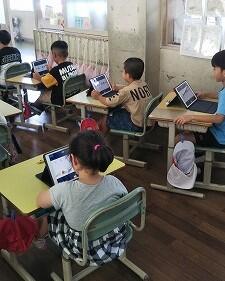 そのあと、お話の確認のために、タブレットを使って場面絵の並び替えをしました。そして、それを発表しました。