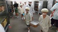 重いお盆や食缶を2人で協力して運ぶ姿や、6年生がよそってくれたおかずをこぼさないようにそっと配膳する姿が見られました。