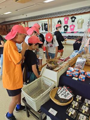 目井津で獲れる魚の紹介、特にブランド魚「めいつ美々鰺」のお話がありました。その後、子どもたちがいろいろな質問をしました。