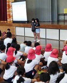2年生は、「万引きダメ」の内容でした。先生と警察の方が子ども役になり、役割演技をとおして学びました。