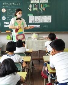 栄養教諭の先生が来られて、食育の授業を1年生にしてくださいました。