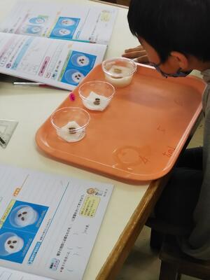 6年生の家庭科の学習でくつ下の洗濯をしました。洗濯機ではなく、つまみ洗い、もみ洗いで衣類をきれいにする学習です。この学習をいかして、家でも実践してほしいです!