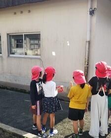 3年生が理科の勉強をしていました。鏡で太陽の光を反射させて壁に映していました。遮ったり囲ったりしながら、光がどのようになるかを実験していました。太陽が雲にかくれて反射できなくなることもあり、自然の力も感じたようでした。