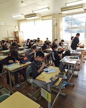 6年生が卒業制作をしていました。タブレットスタンドを作るようです。思い思いの色や絵をつけていました。完成が楽しみです。よい思い出のひとつにしてね。