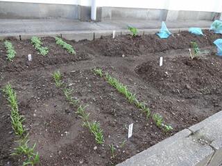 前回の12月末に、おいしい若葉を何者かに食べられていた野菜達も、即席の防鳥(?)ネットが功をそうしたようで、新しい葉がたくさん出て来ました。