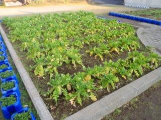 ブロッコリーは青々と葉を広げ高く伸び始めました。キャベツは大きく育った葉が、これから巻き始めてくるようで、子ども達も楽しみにしています。小松菜とホウレンソウも大きくなってきました。