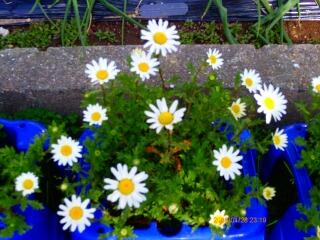 パンジー、リビングストーン、ノースポールなどを育てています。昼休みなどに水をあげて、きれいな花が咲くように一生懸命お世話をしています。