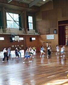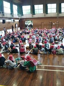 初めての全体練習。天気がよかったので運動場でできました。みんなよくがんばり、1回目にしてはとてもよくできました。100点!