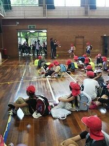 児童を体育館に集め、保護者のお迎えが来た順に帰しました。