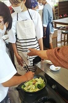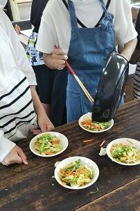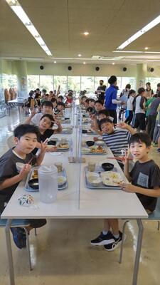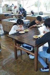 グループで協力して作ったごちそうを、おいしそうに食べていました。