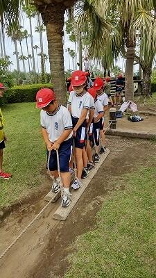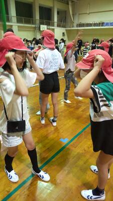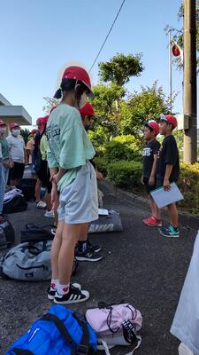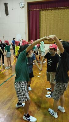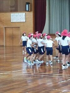 今日は、開会式、ラジオ体操、エール交換、開会式後の退場の仕方を練習しました。座って話を聞いたり、水分補給を3回入れたりして、熱中症対策をして行いました。