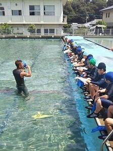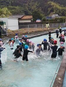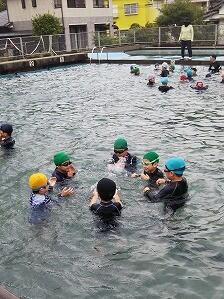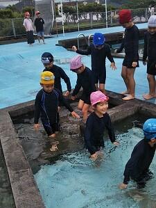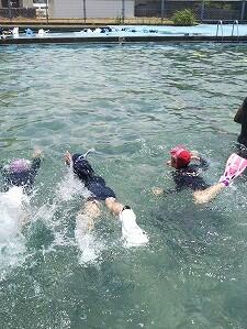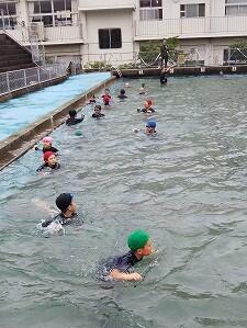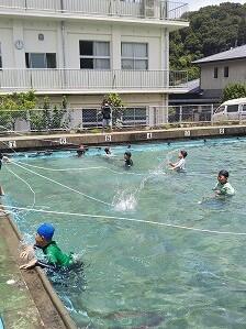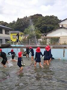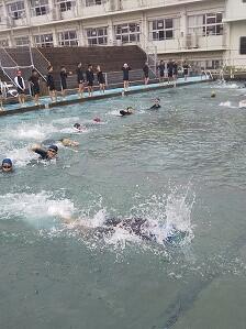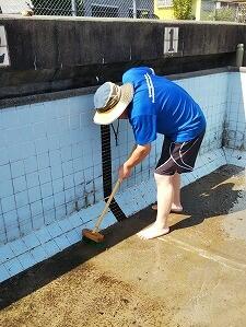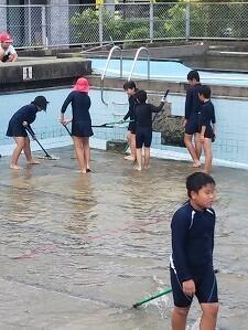 本校は、プールの水の循環機械がないため、毎週水を入れ替えます。プール清掃も毎週します。