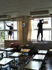 本校では、熱中症指数に則って行動制限を設けています。指数によって運動を禁止にしたり、外での運動を中止したり、昼休みの外遊びを制限したりしています。