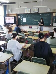 本校では、先生方が一人一授業の研究授業に取り組んでいます。授業を見合うことで、授業づくりや授業技術を高め、授業改善に生かしています。
