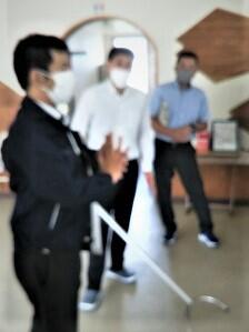 階段は上がるときより下りる時の方が怖かったです。白杖の大切さも分かりました。