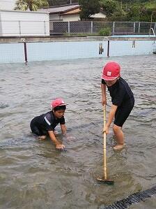 ヘドロがすごくて、水もなかなか抜けなくて、職員みんなでかかっても、とても大変でした。