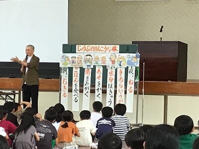 人間の基本である健康についてお話してくださり、そこからSNSやゲーム等が脳に与える影響を科学的にお話をしてくださいました。「早寝早起き朝ご飯」は大切なことであると再確認できるお話でした。