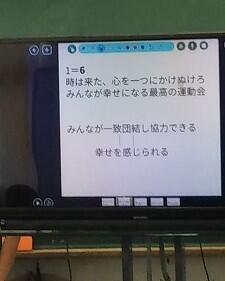 決まったスローガンを全校のみんなにお知らせし、そのスローガンを運動会のがんばる合言葉とします。