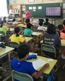 5年生が外国語の授業をしていました。先生の問いに「allways、ususlly、sometimes、never」のどれかを答えるクイズ形式で行っていて、大盛り上がりでした