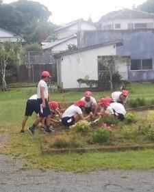朝、花壇の草抜きを6年生がしていました。雑草が伸びるペースが速いので大変ですが、毎日のようにがんばってくれています。