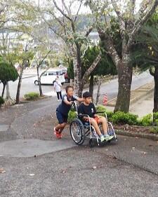 車椅子は坂を上る時も大変だけど、下るときはバックだから、乗っている人が怖くないようにゆっくりゆっくり進みました。