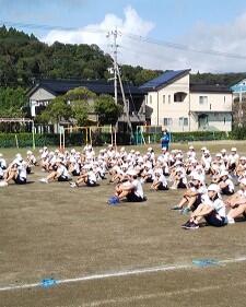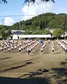 今日の朝の活動から1校時にかけて、運動会の全体練習を行いました。今日は9月15日で、運動会は10月15日なので、ちょうど一ヶ月前になります。