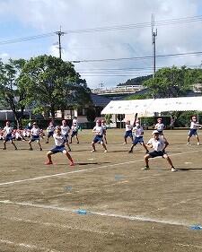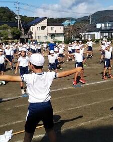 2学期になっても運動場で体育ができないことが多いですが、運動会に向けて体を慣らしながら徐々に進めています。