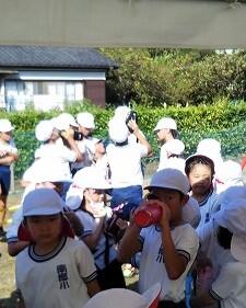 今日は、外での体育は可でした。それでも、活動内容を軽減(走る回数を減らす)したり、休憩を入れたり、日陰で待機させたり、水分補給をさせたり、熱中症対策をとって実施していました。