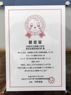 本校の学校支援地域本部が、県から「みやざき子育て支えん隊」として認定され、認定証、パーカー、のぼりが届きました。
