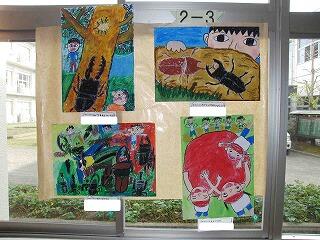 管理棟1階と2階の廊下に、各学級の作品を掲示しています。