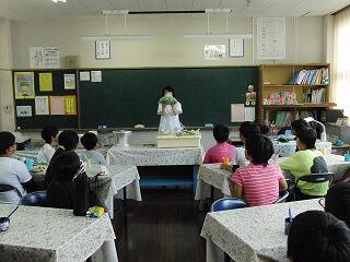 さて、本校にはランチルームがあります。定期的に各学級がランチルームで給食をとり、食後には栄養教諭が、食に関する話をしています。先日は、6年生がランチルーム給食を実施しました。栄養教諭から、1日に摂る野菜の量やその必要性について話をしました。