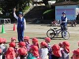 秋晴れのもと、昨日は交通安全教室を実施しました。今回の交通安全教室は、安全な自転車の乗り方でした。交通安全協会の方に来ていただき、安全に関するお話と自転車に乗るときの指導をしていただきました。これからも交通事故がないようにしていきたいと願っています。