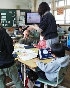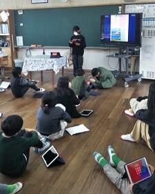 5年:総合的な学習の時間に、タブレットを使ってまとめた「かつお一本釣り」の発表をしていました。