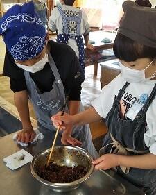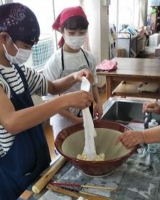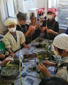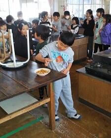 4年生が、こま打ちと炊き込みごはん作りをしました。