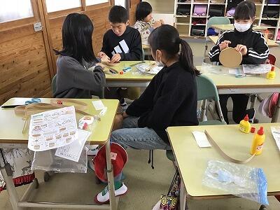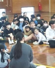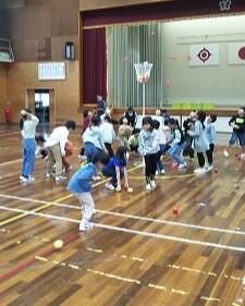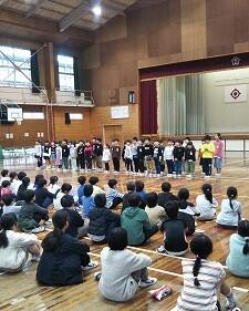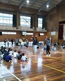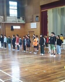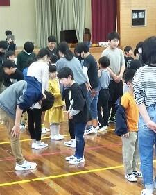 6年生を送る会の後、体育館で2学年ずつ(1年生と6年生、2年生と5年生、3年生と4年生)が時間を区切って活動していました。