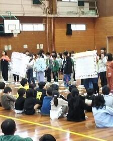 4年生:劇を基にしたクイズと呼びかけを贈りました。