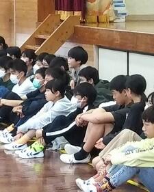 式の後、生徒指導担当の先生から、春休みの過ごし方についてお話がありました。春休みも「火、水、車、人、金」に気を付けて過ごしてくださいね。